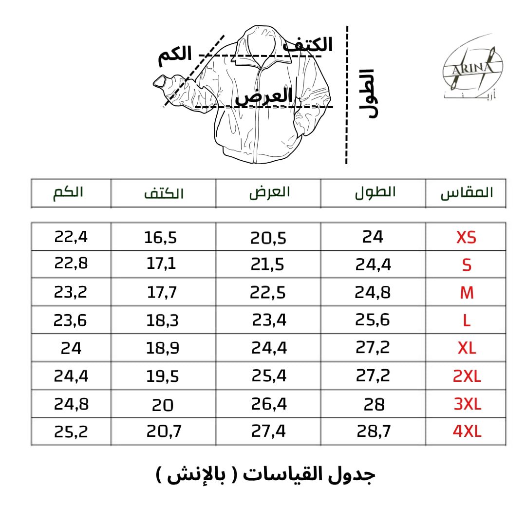 - تطريز باتشات: ضمن سعر الجاكيت، يشمل التطريز عدد 2 باتش على الكم الأيمن، 2 باتش على الكم الأيسر، 2 باتش خلفي، و 1 باتش أمامي.